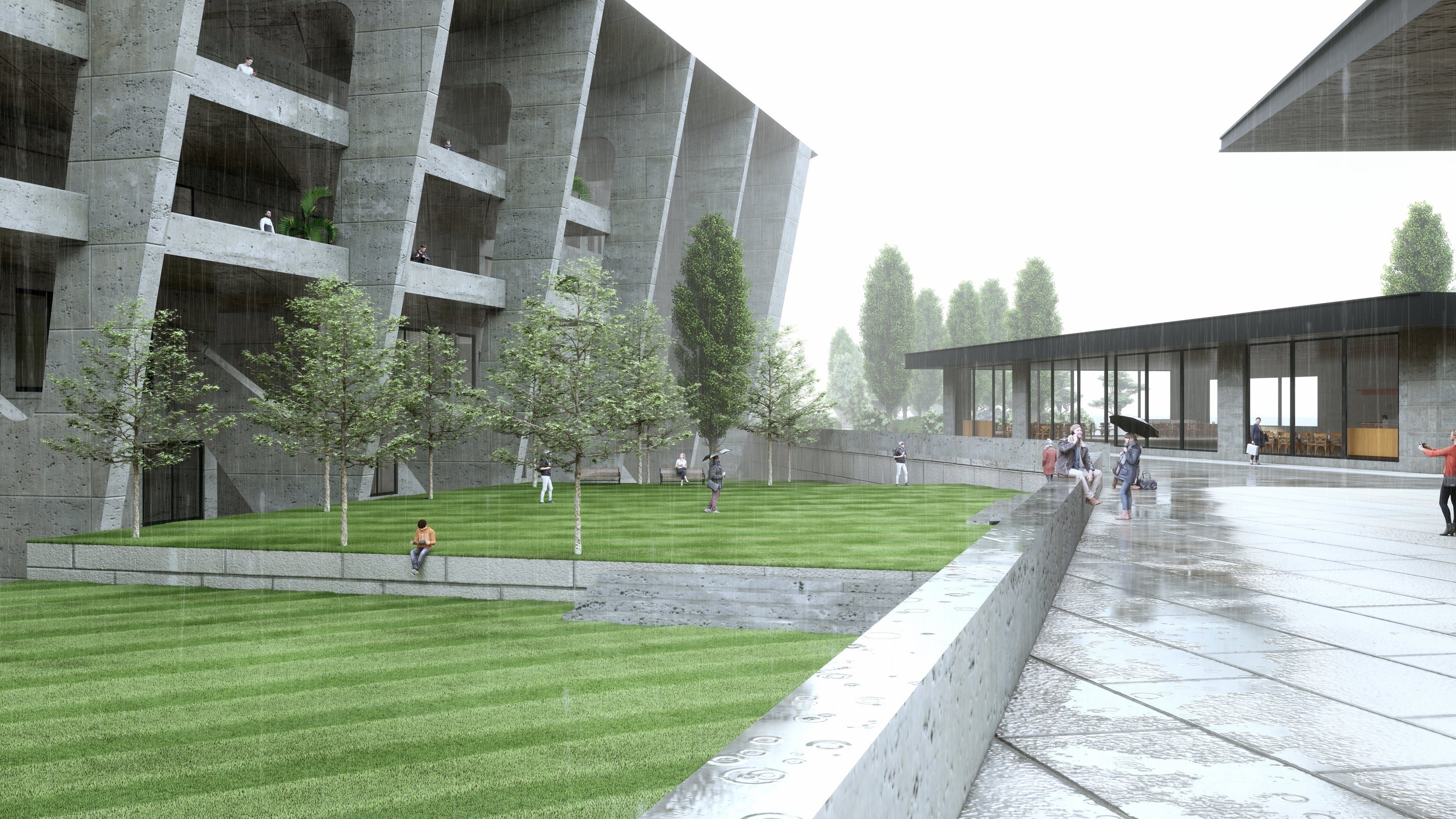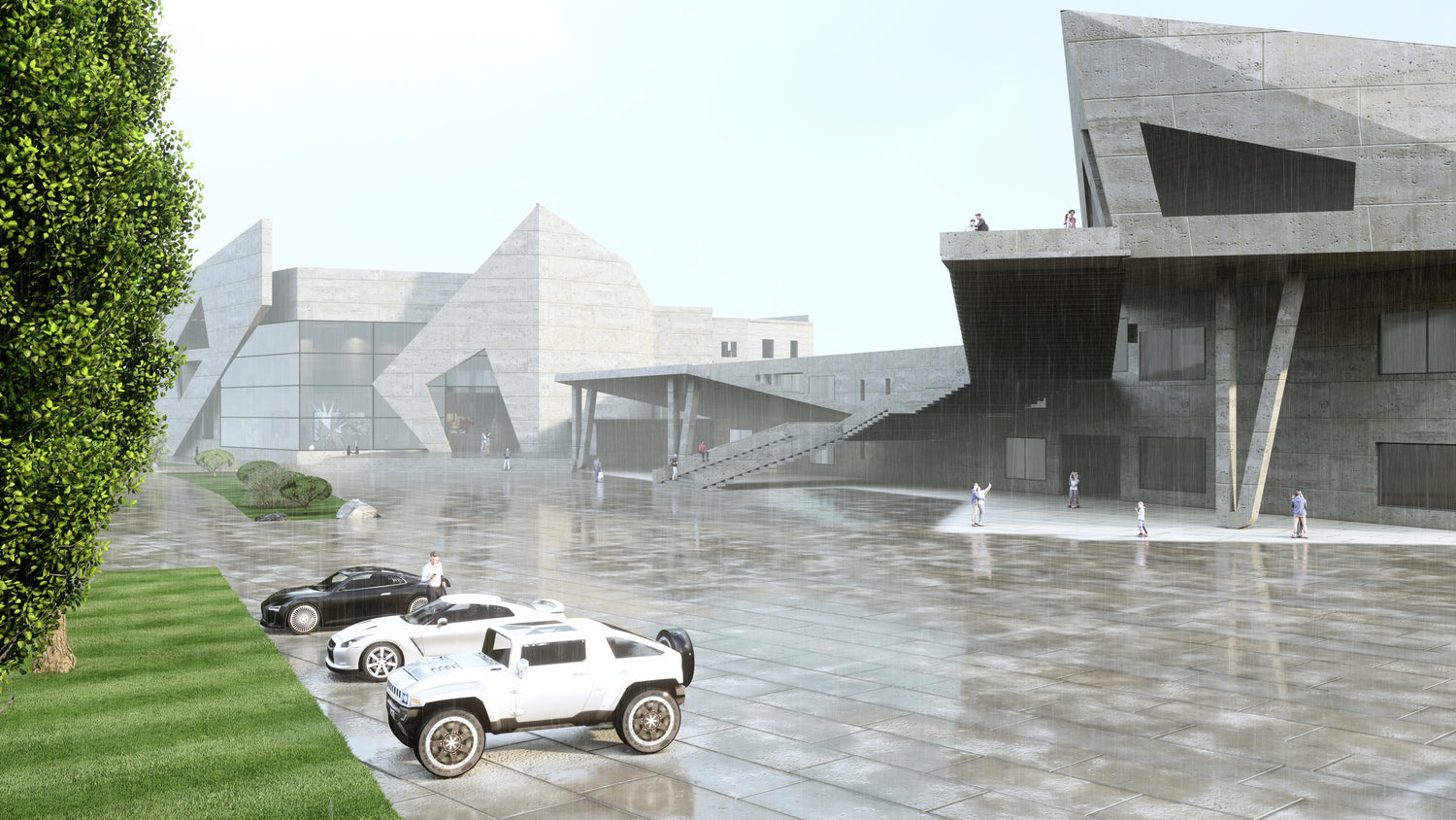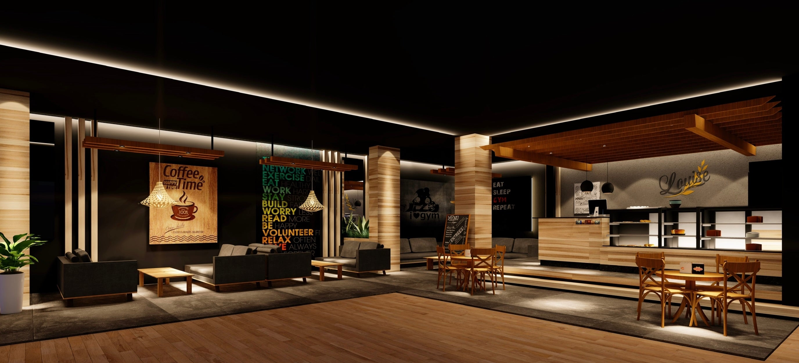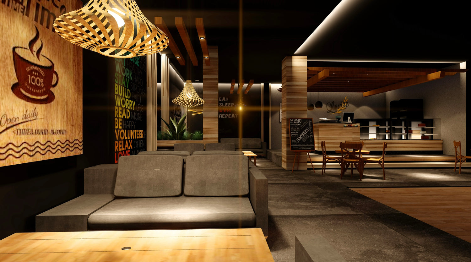 Interior with modern lines. Play with natural stone with concrete finishes along with natural wood.