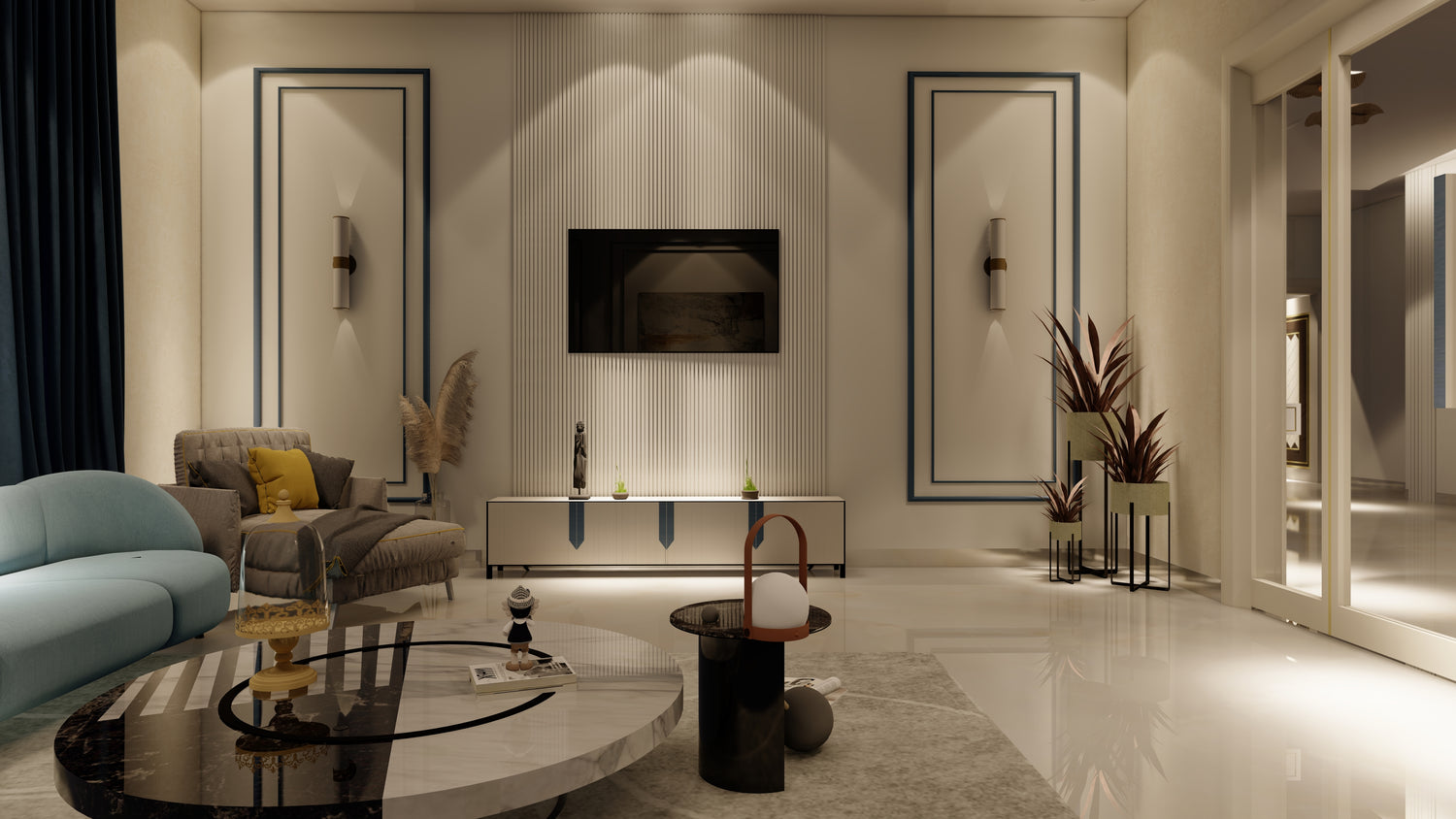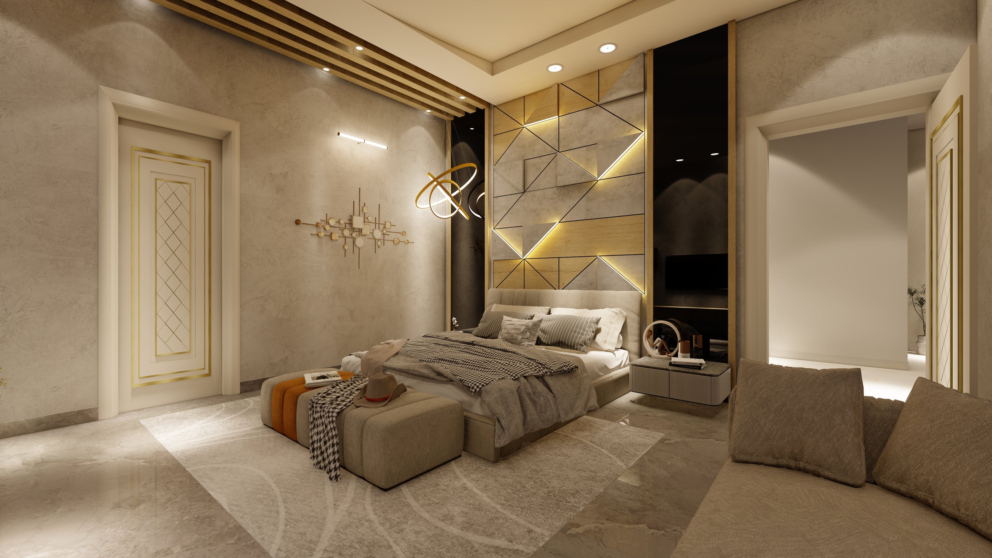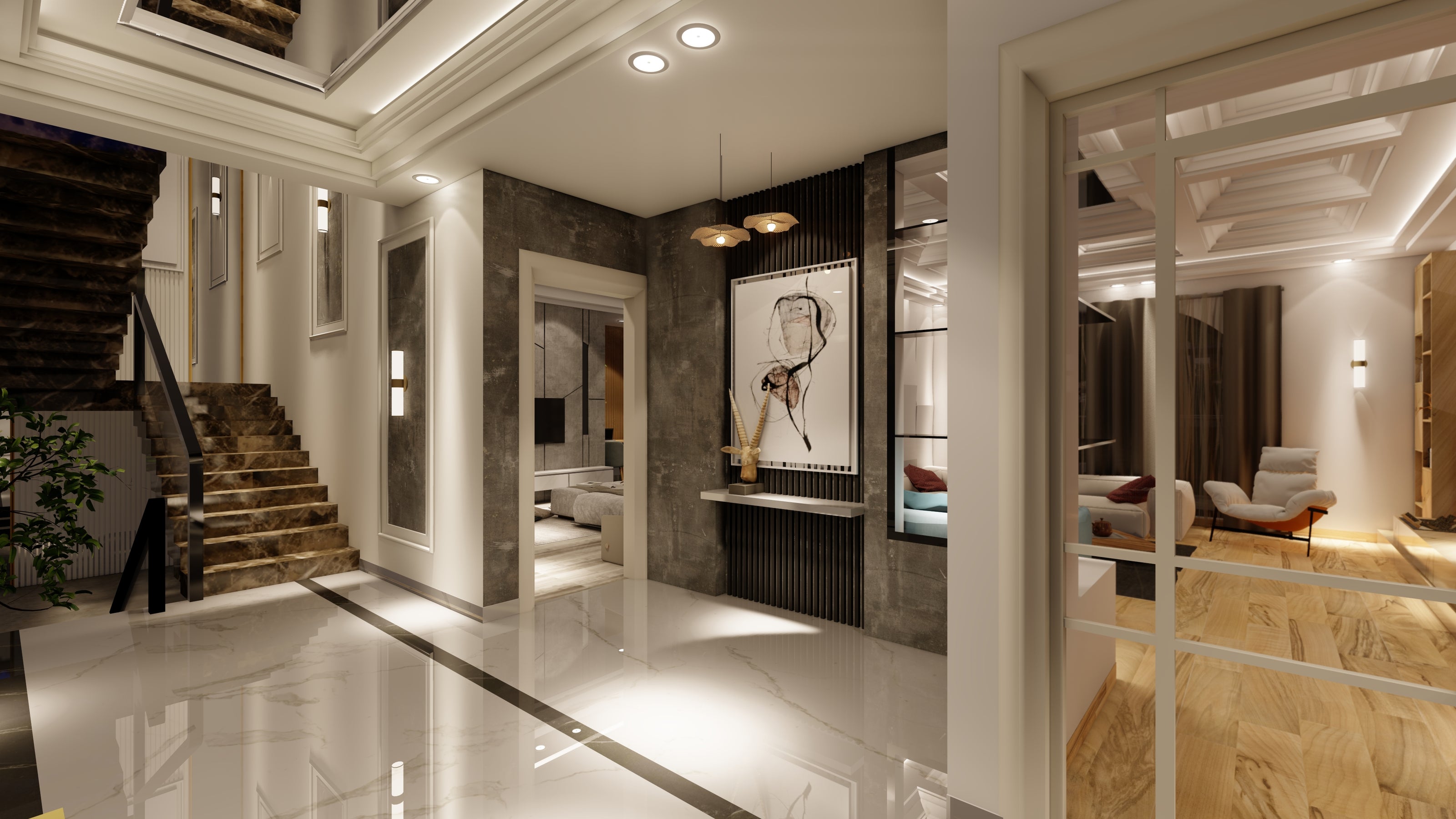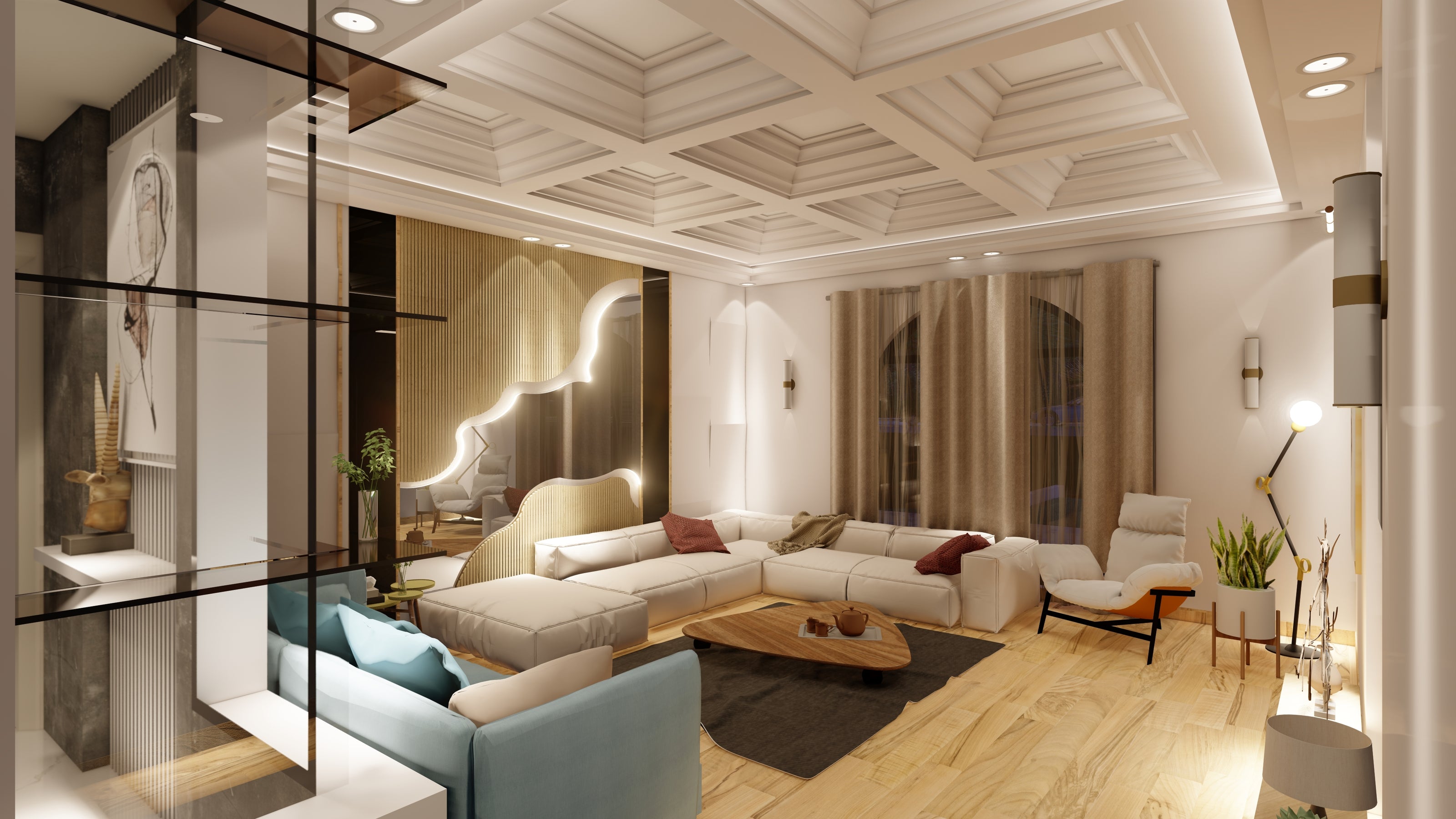 LUXURY INTERIOR WITH MODERN INTERIOR ELEMENTS AND FURNISHING.